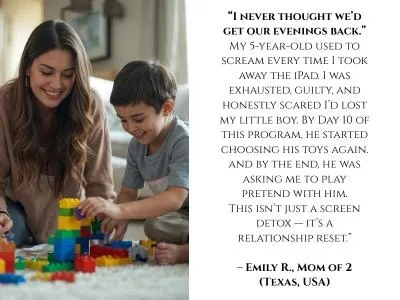 While other parents struggle with escalating screen battles, you'll be reconnecting with your child using our proven system.